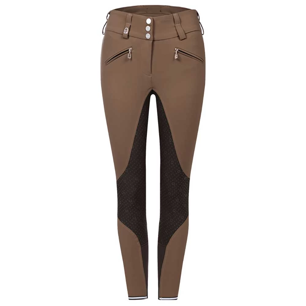 Stick with it with the Cavallo Caja G Hi Waist Ladies Full Seat Breech! Packed with fully functional engineering and high-fashion styling, these will soon be your next favorite pair of breeches. The ultra sticky, GRIP PU Silicone 3/4 seat panel and high waist keep you in place from passage to piourette. Functional cut in the knee area to maximize a proper leg position. Ultra soft and breathable microfiber fabric has a lightweight, softshell-like feel, making them easy to care for and wash. Pair with your favorite tall boots, these breeches are perfect for lessons or clinics!