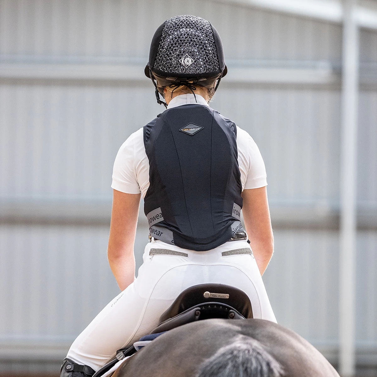 Airowear Shadow Mid-Layer Back Protector offers limitless movement over jumps whilst protecting against impacts from a fall. Hidden back protection fits subtly under show jackets to offer peace of mind and core back protection. The fully flexible front does not restrict movement and breathable material for a comfortable fit while riding. The Airowear Shadow is a lightweight alternative to a full body protective vest.
