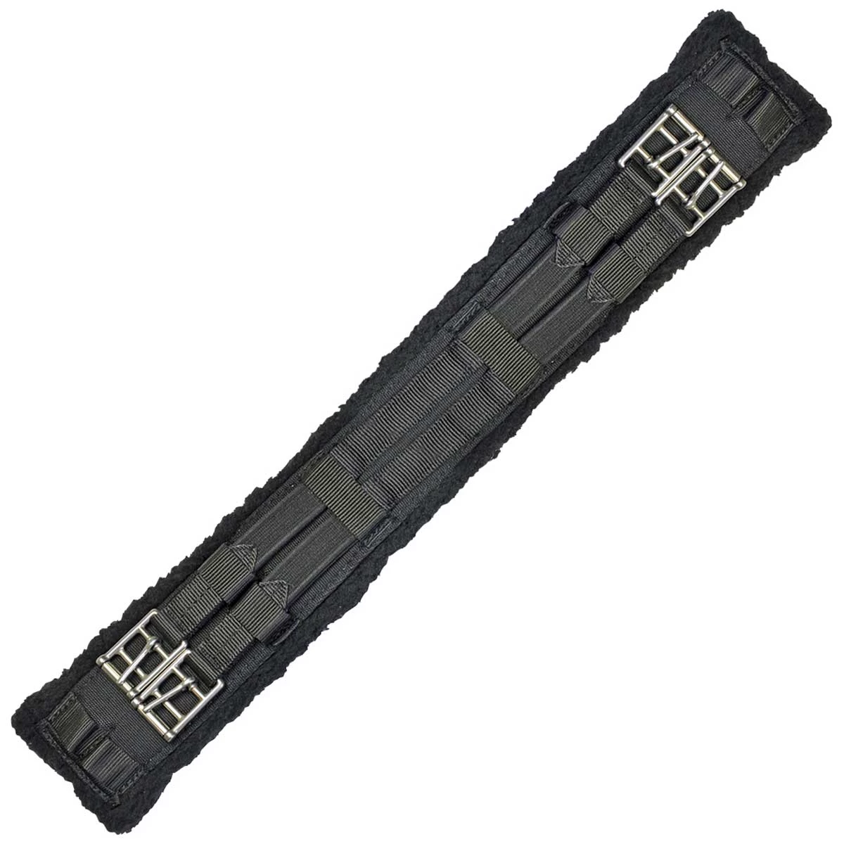 Economic and durable double elastic dressage girth with black nylon web top & thick black comfort fleece bottom.