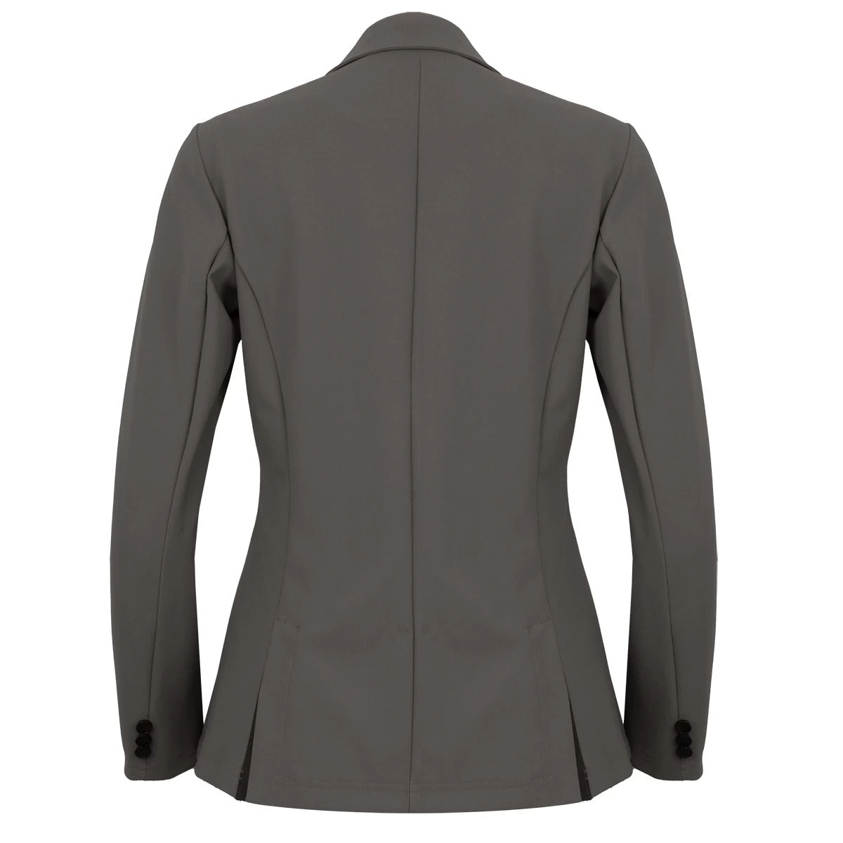 Madelyn Show Coat from the Grand Prix Quinn Series is an attractive four button Ladies show coat that is designed to move with the rider while providing a tailored classic look in the saddle. The hidden zip behind the classic four button closure keeps the front closure looking neat and tidy easily preventing gapping in the front, while high tech stretch TK fabric provides a figure flattering silhouette both in and out of the saddle. The Madelyn show coat is an easy care must have addition to your show attire.