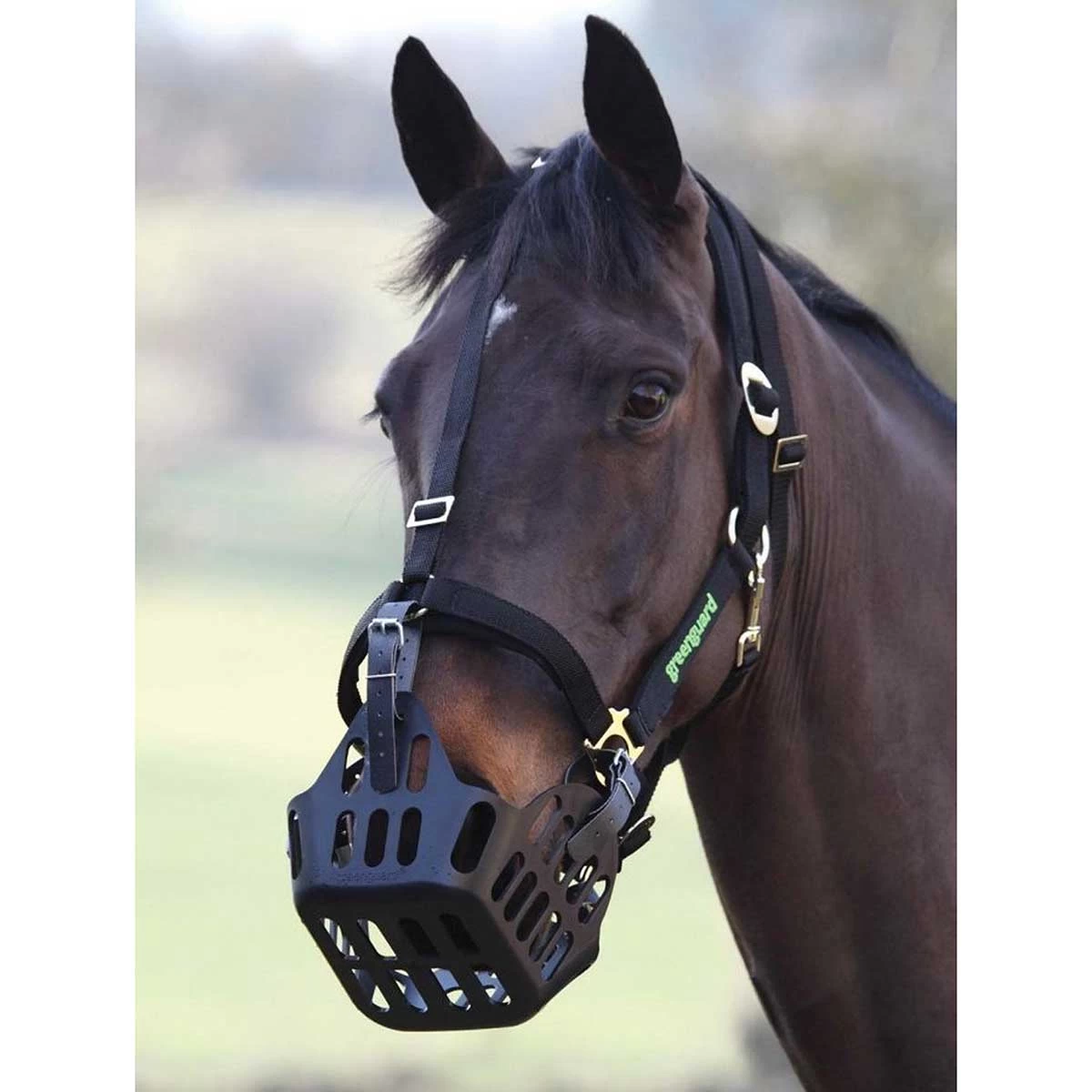 Grazing Muzzle by GreenGuard helps to control the intake of grass and hay. Lightweight, cooler and more comfortable than traditional basket style muzzles with a patented open design. The GreenGuard Grazing Muzzle allows for for unrestricted breathing and drinking. GreenGuard is made of durable, non-toxic material that does not absorb water, making it less likely to cause rubs. Each muzzle comes with 4 breakaway safety straps that allows the muzzle to be attached to any halter. GreenGuard Grazing Muzzles are uniquely designed to fit larger than traditional muzzles, use your horse’s bit size to determine fit. See size guide.