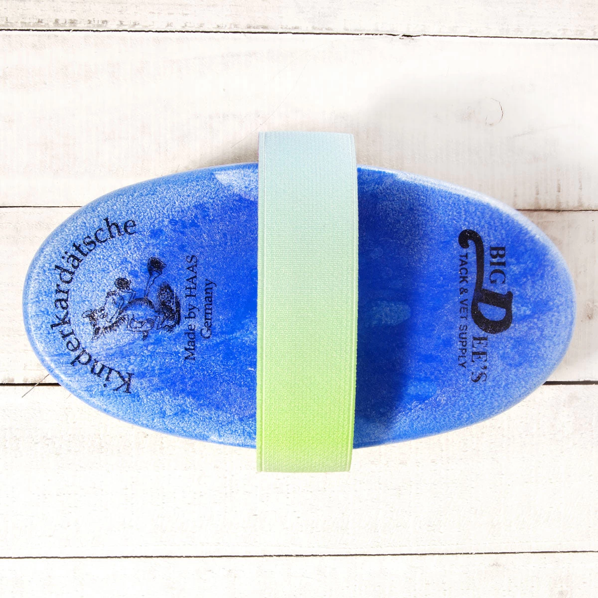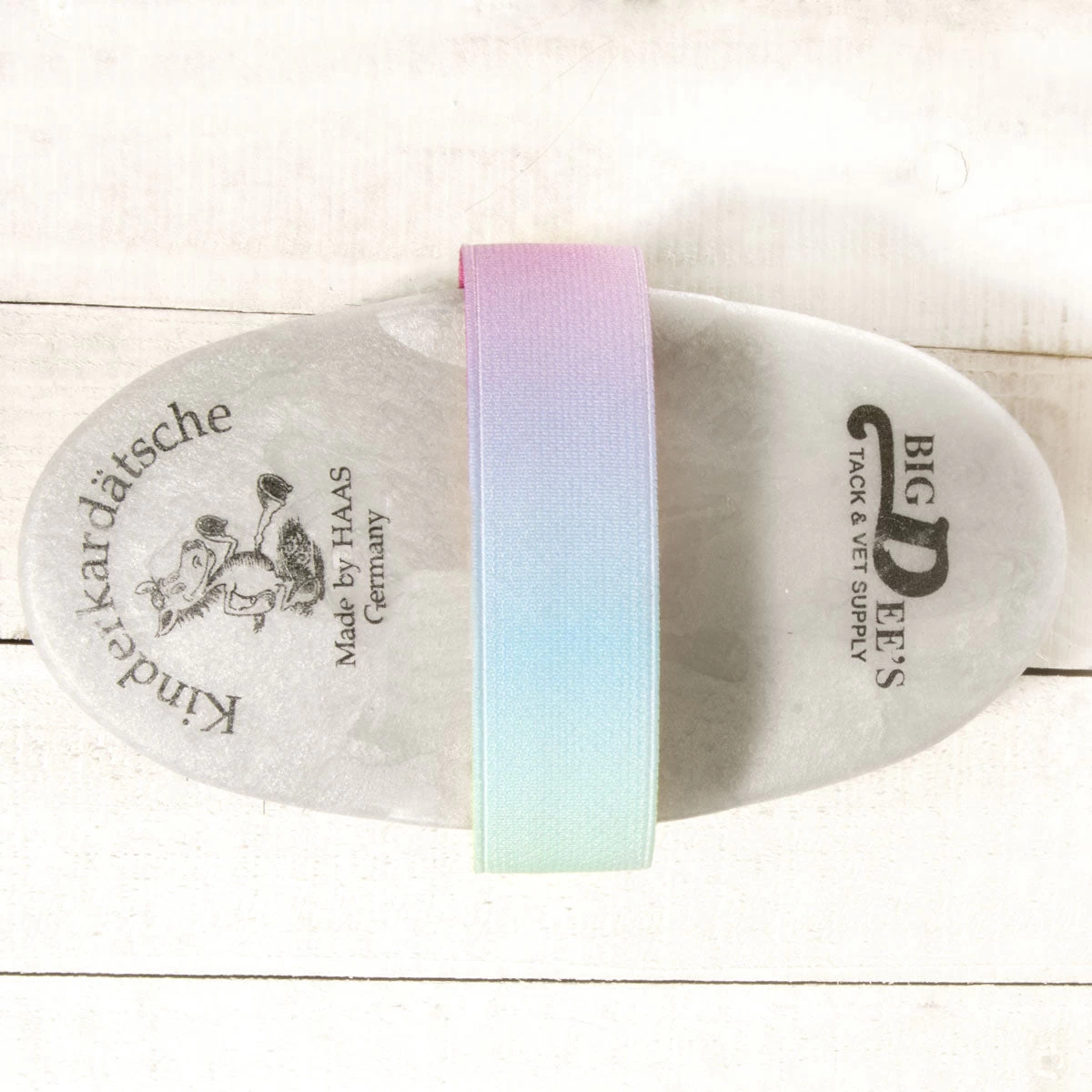 The Haas Kinderkardätsche Brush is made of 100% natural grey horse hair that is perfect for your little one’s grooming kit (and perfect for smaller hands). The cheery, vibrant elastic rainbow strap keeps brushes securely in place without causing fatigue. Use with the Haas Kinderwurzel Stiff Brush for the ultimate grooming turnout! Made in Germany.