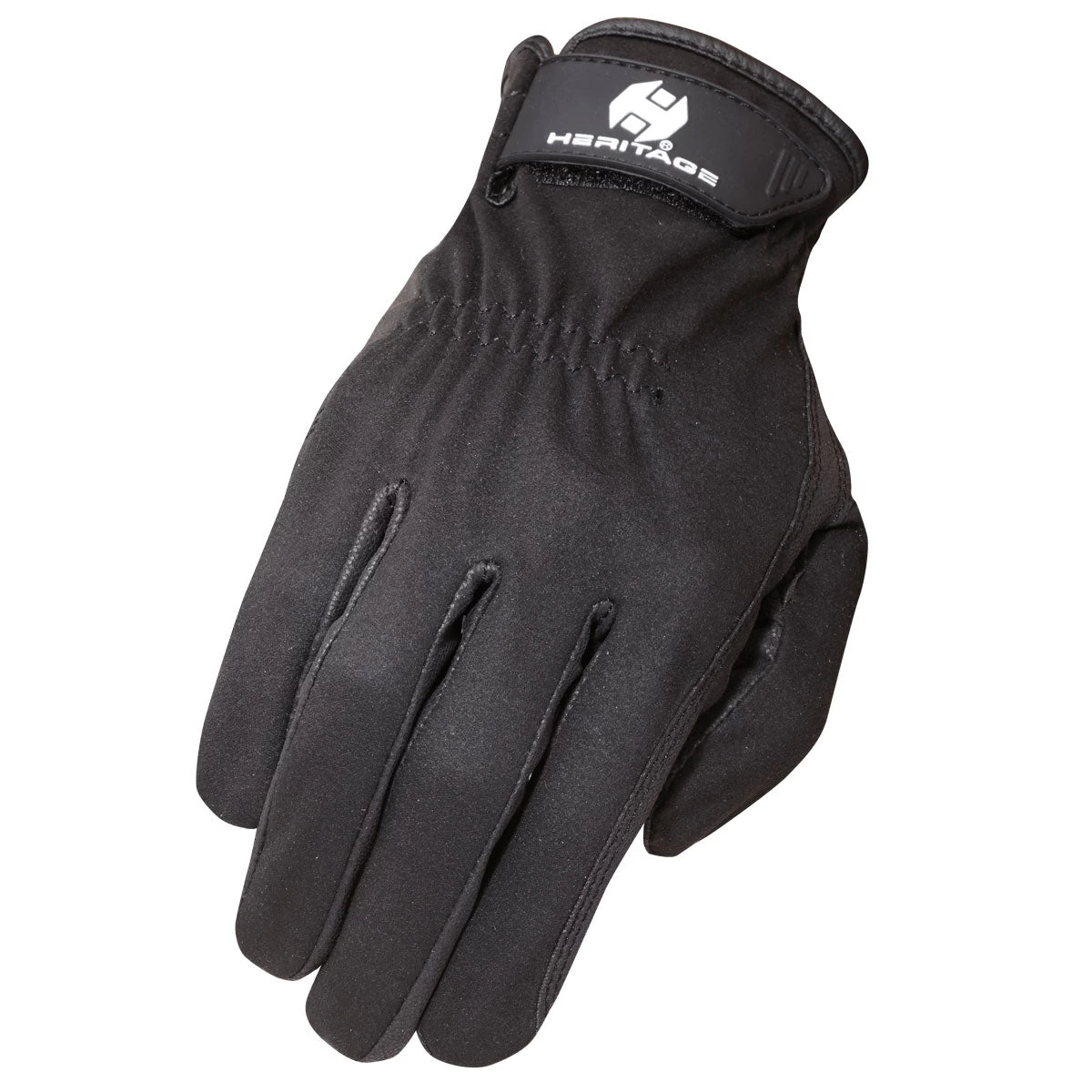 Heritage Tech-Pro Riding Glove is a preferred glove by jockeys, ideal for race or track work. Featuring enhanced grip with nappa grain leather, synthetic suede top, djustable strap and rein cut design for riding comfort, double stitched outward seams for durability. Although a top choice for jockeys this glove also makes a great choice for eventing, endurance and show jumpers.