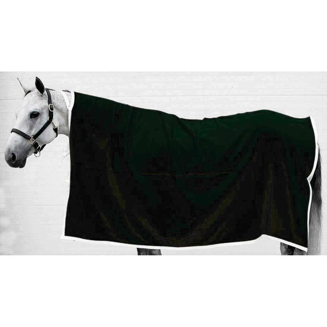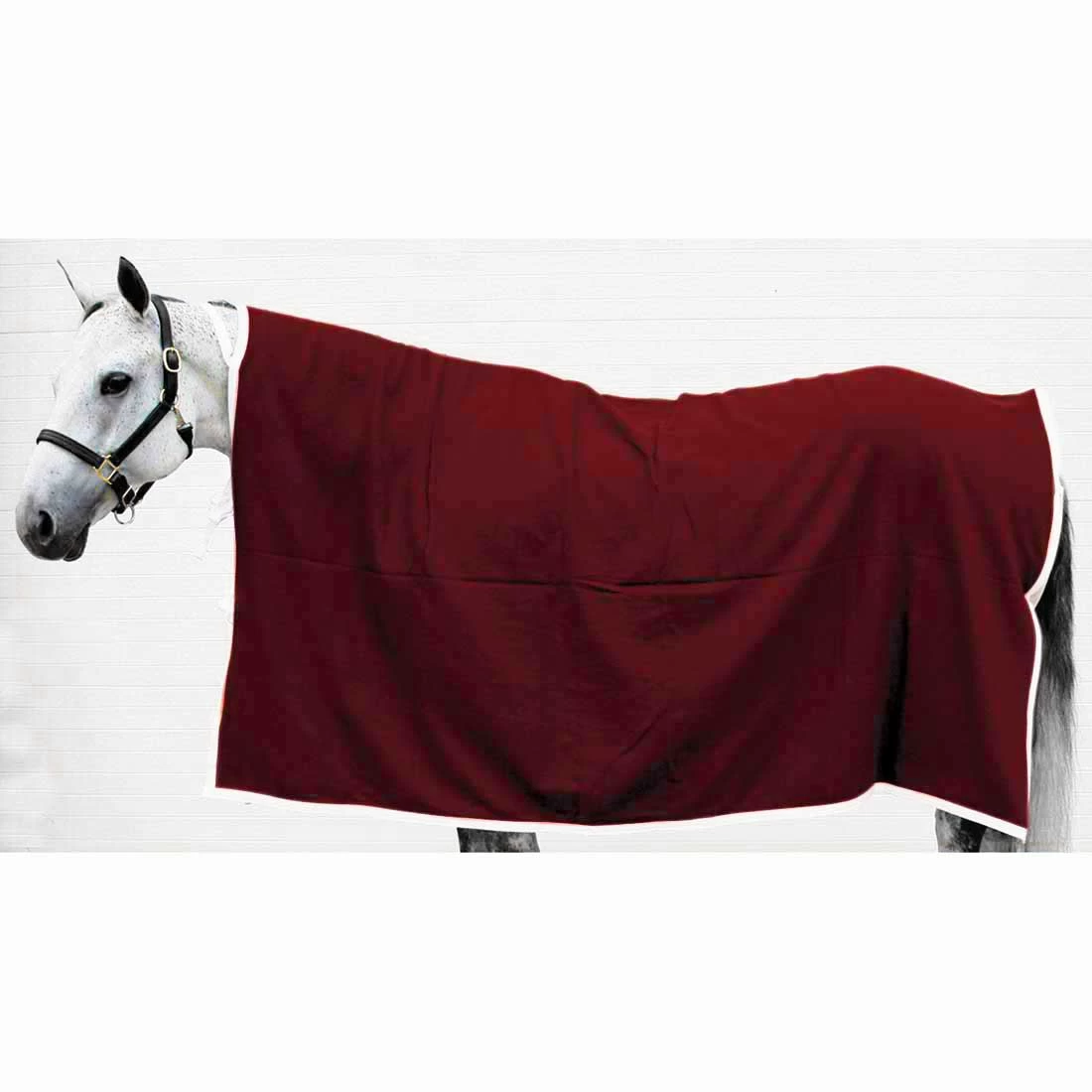 This top Quality 100% polyester fleece Cooler is as warm as wool, but lighter weight. Cooler is bound in nylon webbing and includes a nylon web browband, neck ties and tail cord. Measures 84″ x 90″ square. Perfect for keeping horses warmed up in between events as well as to prevent chilling after exertion or bath.