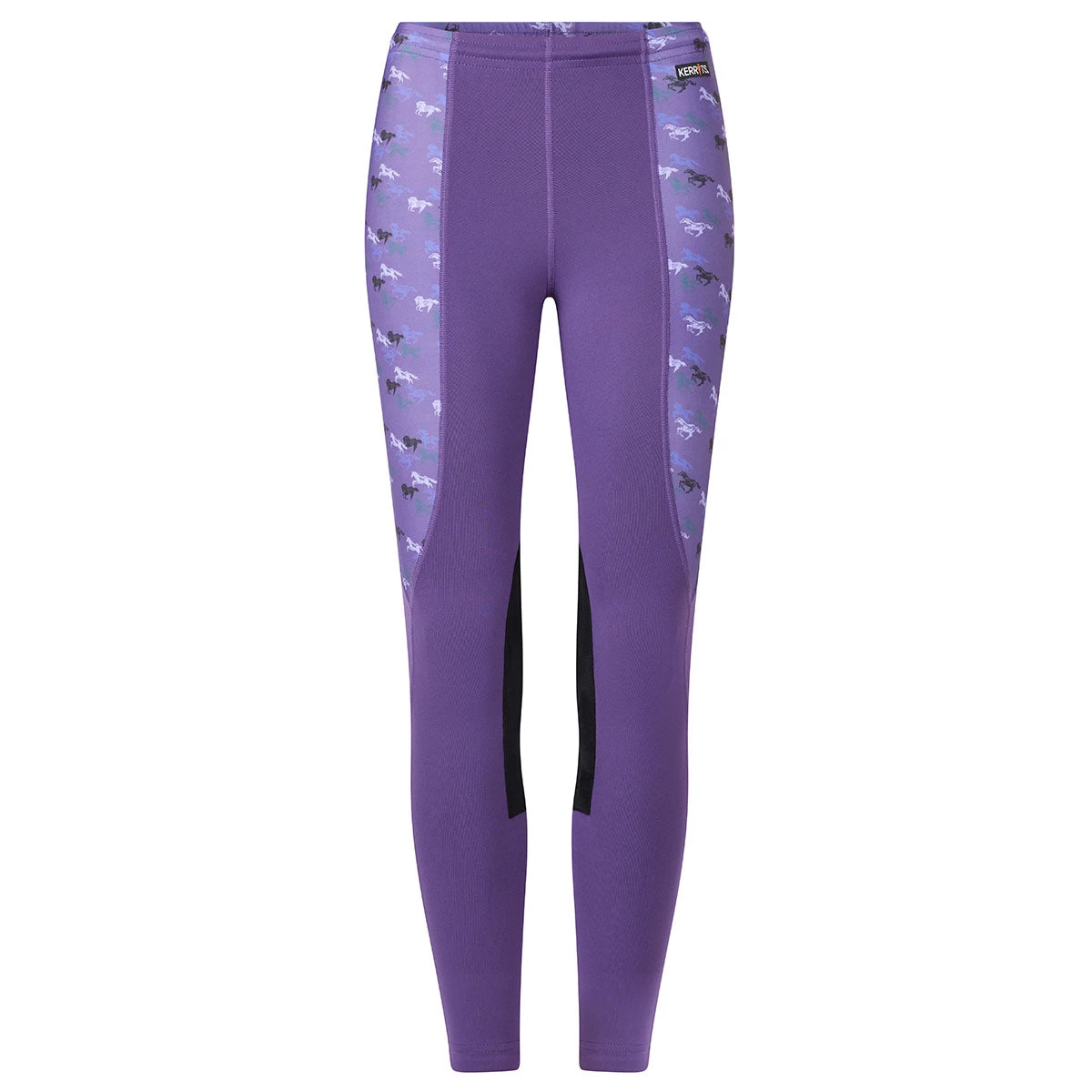 Your little rider will love how fun the Kerrits Knee Patch Girls Performance Tights are. The purple leggings with the purple pony printed side panels makes for a fun outfit for everyday riding. Featuring a lightweight, moisture wicking, and odor resistant fabric for ultimate comfort and durability.