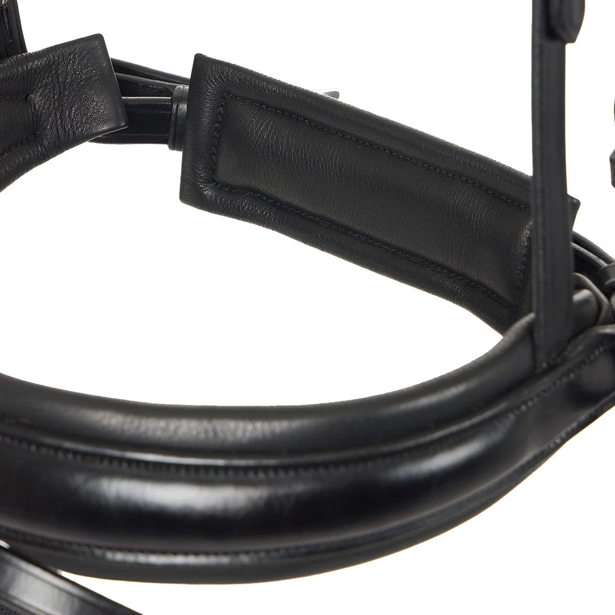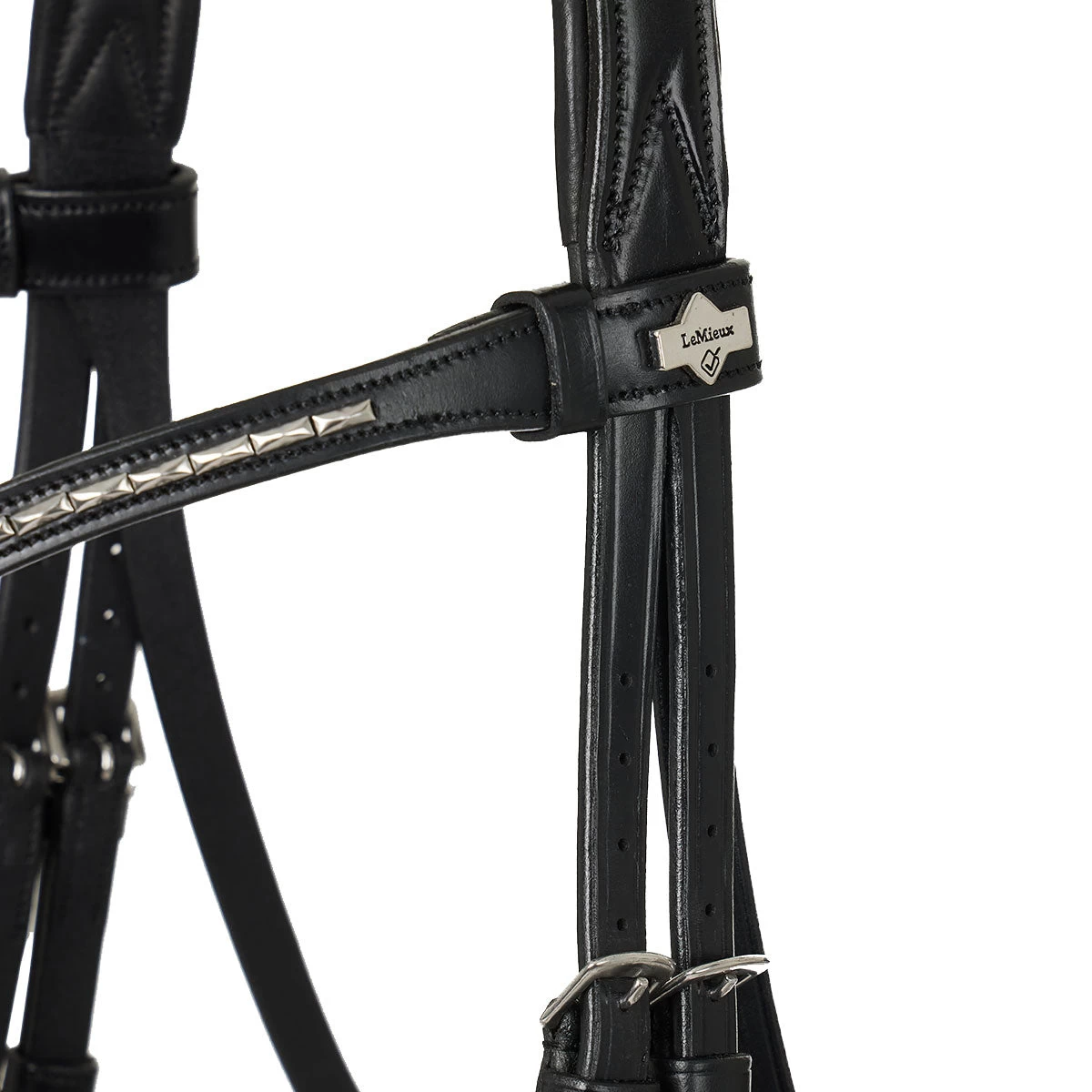 The LeMieux Dressage Bridle offers premium features and styling at an affordable price point. The anatomically shaped crown piece, wide noseband, and crank pad are all generously padded for the horse’s comfort. The shaped clincher browband is detachable, and the unique throat latch buckles under the jaw instead of on the side for a clean presentation. LeMieux bridles are made from beautifully soft European leather and have matching reins (sold separately).