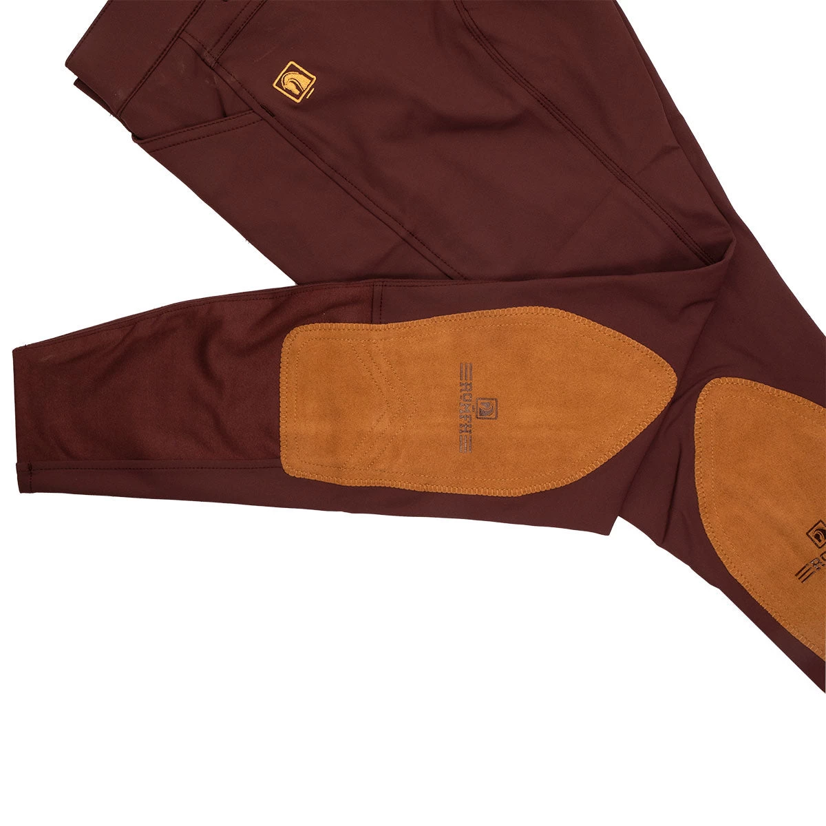 The ROMFH Sarafina Euroseat Knee Patch Ladies Breeches feature a classic fit, rise and style. The soft touch fabric conforms to your body for ultimate comfort without sacrificing mobility in and out of the saddle. The wide, non binding waist is mid rise, and contours into a strategically placed back yoke for the most flattering fit. The classic synthetic leather knee patches complete the iconic style.