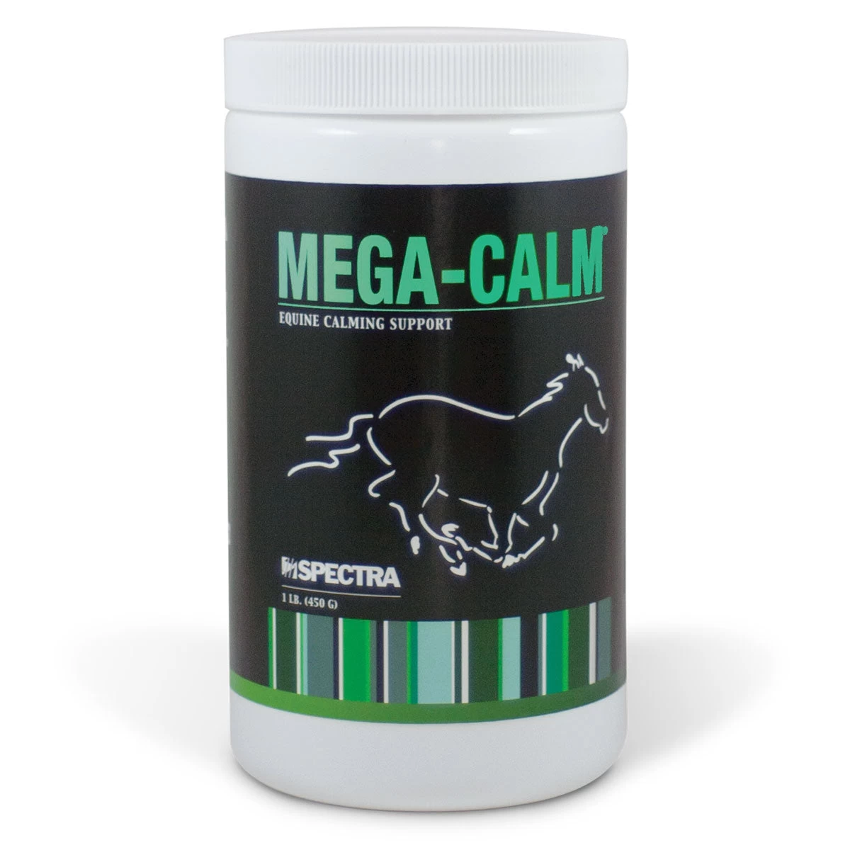 Mega Calm by Spectra Animal Health is a balanced powder supplement containing L-Tryptophan with Vitamins E and B-1. Horse owners and trainers use it to relax nervous horses prior to competition or transportation. It is formulated to provide relaxation without drowsiness.