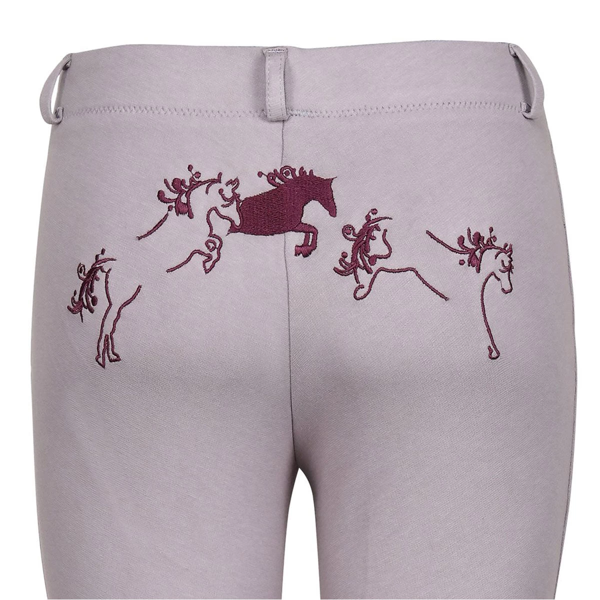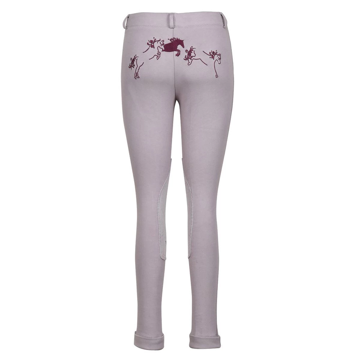 TuffRider Childrens Whimsical Horse Pull-On Jodhpurs are sure to be your young rider’s favorite! This pull on Jods features a whimsical horse embroidery across the back with a complimenting contrast UltraGripp imitation leather knee patch. Detailed with a comfortable 1-1/2″ elastic waistband, your child will be thrilled with both the comfort and cuteness of these jods!