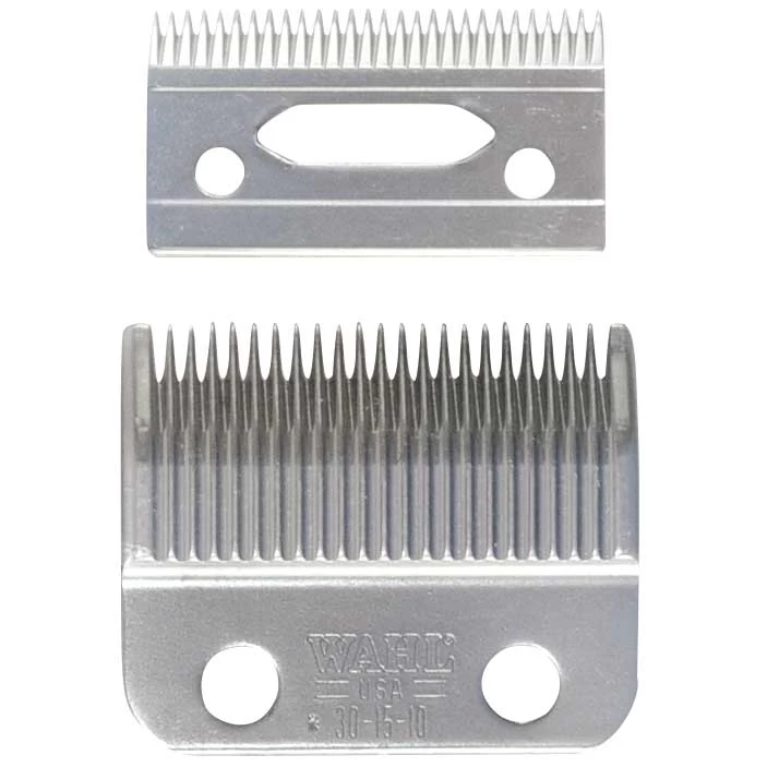 Wahl Standard Adjustable 30-15-10 Blade Set for adjustable blade clippers. Made from high grade stainless steel with a satin chrome finish for rust and corrosion resistance.